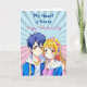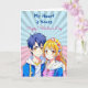 A sweet pop art Happy Valentine's Day card depicting an anime boy and girl couple in blue and pink. On back is a colouring page where you can personalize the names. Valentine's Day card for him or her.