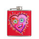 A smiling, contemporary art style emoji as a red heart shaped emoticon face in the bright, colourful Valentine colours of red, pinks, magentas and purples accented with other complementary colours.