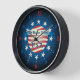 Stars and stripes inspired graphics adorn this beautiful American styled clock face. Customize the type to make it your own home town or state. Perfect for special occasions or a great gift idea.