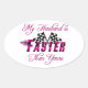 Racing saying for women on t-shirts, mugs, buttons, stickers and more that reads, my husband is faster than yours.