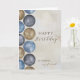 Simple card for husband on his birthday has watercolor circles in masculine colours of blue, grey and brown on a distressed tan background.