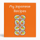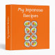 Colourful binder for keeping your favourite Japanese recipes in the one place. The perfect gift for the person who loves cooking Japanese cuisine - the brightly coloured binder features an unusual sushi design with the words My Japanese Recipes written on the front and spine. The background colour and text can be changed by clicking on the customise button. Visit the store for a range of cards and gifts featuring this cute sushi design.