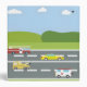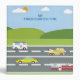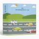 My Kindergarten Time." Features cars and trucks on a road against a backdrop of green hills and a blue sky with clouds.