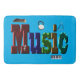 Pictured is a colorful dimensional music word with microphone, drum, percussion instrument, accordion, guitar, in the design