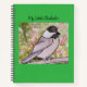 Coloured pencil drawing with watercolor background. Chickadees are adorable and when I see them in the winter, they make me smile. So, I decided to keep some happy with me this winter in the form of this little Chickadee. May this design help you to realize that even in winter there is plenty to make you smile, as you use this notebook.
