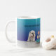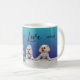 Whimsical "Dogs and cupcakes are my Love language" Mug with adorable mischievous puppies eyeing the carousel of cupcakes. An enjoyable gift for anyone; especially for dog lovers and pet parents.