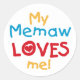 My Memaw Loves Me T-shirts and Gifts Classic Round Sticker