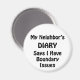 For the sarcasm lover in all of us. Check out this witty “My Neighbour’s Diary Says I Have Boundary Issues” design on apparel and gifts.