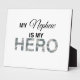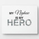 Fully customizable. Has "my nephew is my hero" written in it. The word "hero" is in digital camouflage.