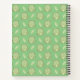 On the front is a green kawaii frog inside a yellow square in a green background. Above the frog reads My Notes while below there is space for your name. Both of these are templates you can use to personalize this design. On the back is a repeat pattern of the same frog with green leaves on a green background.