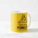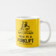 My other ride is a forklift in black uppercase mixed font with an icon image of a person on forklift truck. Set on solid vivid construction yellow.