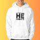 My Pronouns are He Him His. Stated in black, big and bold on this warm hoodie.