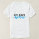 Social justice themed design that celebrates inclusion and diversity. After all, we are HUMAN. Features "My Race:" in charcoal grey text with "human" in bright blue modern script.