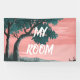 This banner makes the perfect sign for your kids room. This design features a cool pink sky with a big, leafy tree in the corner. In the centre, there is a white text that reads " My Room".