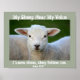 Inspirational quote scripture poster depicts an adorable lamb and features Bible Verse John 10:27, My sheep hear My voice. I know them, they follow Me._