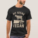 A clever design highlighting the unexpected, showcasing a steak-shaped emblem with a playful twist: it's vegan! Embrace food surprises with this unique accessory.