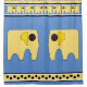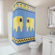 Your kids are going to love taking a bath now w/ this adorable shower curtain featuring cute cartoon-style sunny yellow elephants set against a trendy blue background w/ borders of marching baby elephants on top & large black polka-dots on yellow at bottom.