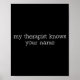 My Therast Knows Your Name Funny Quote Poster