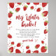 Bring some fun to your baby shower with this 8x10 table sign featuring a charming watercolor strawberry design. The text instructs guests to participate in the 'My Water Broke' game, where a frozen baby figure is placed in a drink. The first person to find their baby floating free gets to shout 'My Water Broke!', making for a memorable and entertaining moment in your baby shower celebration.