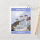 Anyone would love to receive this Greek Islands travel postcard featuring a watercolor illustration of the windmills in Mykonos, Greece!