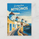 Step into the timeless beauty of Mykonos, Greece, with this vintage-style postcard. Showcasing the island’s iconic windmills, whitewashed buildings, and shimmering Aegean waters, this design captures the charm and elegance of this world-famous destination. Perfect for collectors, travelers, or as a unique gift, this postcard celebrates the enchanting allure of Mykonos.