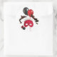 Round sticker with an image of a red feathered mask, red and black balloons, a ruby heart, and a black sequined heart. See matching custom-cut vinyl sticker, confetti, favour bag, favour box, favour tag, gift bags, label and wrapping paper. See the entire Cancan Sticker collection in the INVITES | Stickers & Labels section.