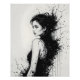 An evocative over-the-shoulder back view of a woman gazing back toward the viewer. Her profile subtly emerges from heavy black ink textures and flowing drip trails, creating a mysterious and moody atmosphere. The artwork combines bold ink strokes with delicate details, emphasizing intrigue and emotional depth.