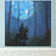 Mysterious Black Knight in the Moonlit Forest Canvas Print