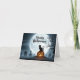 A Halloween greeting card featuring a glowing jack-o'-lantern with a black cat on top, set in a misty graveyard with tombstones and a barren tree, all under a large, eerie full moon.
