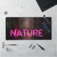 Digital composition of my own photograph with an added neon sign nature in magenta colour with glow and lighting all around the forest.