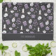 Get ready for Halloween with this spooky chic kitchen towel featuring a pattern of snakes, mystical crystals, spellbooks, candles, jars, skulls, tarot cards, and potions on a charcoal background. Personalize with a name or monogram along the bottom.