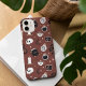A spooky chic phone case featuring a pattern of snakes, mystical crystals, potions, spellbooks, candles, jars, skulls, tarot cards, and potions on a darl earth tone terracotta background.