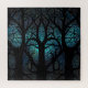 This captivating artwork features a stained glass mosaic design depicting an abstract forest scene. The intricate patterns of the tree branches and leaves create a mesmerizing effect, enhanced by the play of blue and green light filtering through the glass. The dark silhouettes of the trees add a mystical and enchanting quality to the piece, making it a perfect blend of nature-inspired art and decorative design. Ideal for those who appreciate detailed and imaginative artwork.