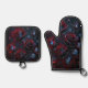 Add a touch of sophistication to your kitchen with this stunning set including oven mitt and pot holder featuring vibrant roses against a deep, dark background. The rich floral design exudes elegance and charm, making it both a functional and stylish addition to your cooking space. Perfect for those who love gothic esthetics, vintage florals, or simply a bold, timeless look.