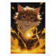Step into a realm of enchantment with this captivating artwork featuring a majestic, wide-eyed kitten surrounded by swirling golden flames and arcane energy. With its mesmerizing teal eyes and intricate fur pattern, this mystical feline exudes both innocence and ancient power. A radiant orb of light pulses at its chest, evoking the essence of magical familiars and legendary guardians.