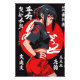 This artwork features a character with dark hair and glasses, wearing traditional Asian attire with intricate patterns. The character is set against a striking red circle reminiscent of the Japanese flag, which could symbolize the rising sun or moon. Surrounding text in an East Asian script adds to the cultural ambiance of the piece, suggesting themes of heritage and mysticism. The bold colour contrast and cultural elements make this image both captivating and significant.
