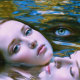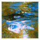 Mystic Waters: An eye appears in the midst of a gold and blue swirling sea, with a subtle reflection of a face in the water. This surreal image conveys the idea of exploring the depths of our psyche and the duality of perception and reality, where dreams and consciousness intertwine.