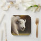 Paper party plates features AI generated digital art painting of a white buffalo, known within Native American cultures as being sacred or holding spiritual significance.