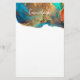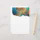 Gorgeous abstract teal and coral with rich gold marbling on top front side. Simple art at header on solid white page.