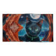 As the Mystical Black Cat, with its emerald encrusted collar and emerald green eyes, sits within the moonlit celestial mandala with its bold colours and geometric pattern designs is not only for year around home and living but a Halloween game changer, exuding positive vibes, is suitable as a gift for family and friends.
