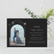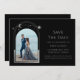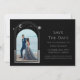 Mystical Chic Black Silver Sun Moon Star Astronomy Celestial Cosmic Space Save The Dates features a silver coloured sun, moon and stars frame on an elegant black background. Inside is your favourite photo and your custom save the date information. Personalize by editing the text in the text boxes. Designed for you by ©Evco Studio www.zazzle.com/store/evcostudio