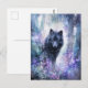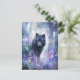 Mystical Black Wolf in Purple Watercolor Forest Postcard