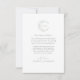 At the centre of the card is a crescent moon adorned with delicately intertwined leaves, forming a botanical wreath that encapsulates a monogram. This personalized touch elegantly combines the couple's stylish simple initials, creating a unique and sophisticated emblem that symbolizes the unity and gratitude of two souls connected through a mystical journey.