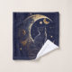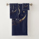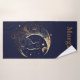 Transform your bathroom into a magical retreat with this celestial cat and crescent moon towel in gold and navy. Personalize it with a name for the perfect gift for cat lovers, stargazers, or fans of witchy decor.