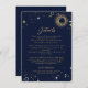 Carte d'enceinte mariage personnalisée mystique céleste avec galaxie laiteuse ciel de minuit avec poussière d'étoile, lune de croissant et autres symboles astrologiques en bleu marine et couleurs dorées. Cette carte est facilement modifiable. Si vous avez besoin d'aide pour la personnalisation de cette carte ou si vous avez besoin de plus de produits correspondants pour cette collection, envoyez-moi un message aimable via Zazzle.