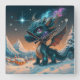 Mystical Chibi Dragon Winter Landscape Square Wall Clock