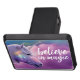 Behind the unicorn, the sky bursts with fantasy—pastel sunrise clouds, cosmic jewel-toned auroras, and glittering star clusters, creating a dreamy scene that blends strength with softness. It’s the perfect blend of fairy tale and horsepower.