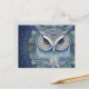This whimsical fantasy forest owl is depicted as a magical and mystical creature, with it's piercing yellow eyes and unique feather pattern. It is set on a background of winter foliage and enchanting, sparkling stars amongst the night sky.