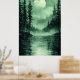Step into a world of mystery with this captivating monochrome artwork. A glowing full moon rises over a misty forest, its reflection shimmering on the still waters of a secluded lake. The deep green tones create an ethereal and calming atmosphere, evoking the serenity and enchantment of untouched nature. Perfect for lovers of mystical landscapes, nighttime scenery, and elegant minimalist decor, this piece brings a sense of wonder and tranquillity to any space.