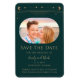 Mystical Green Gold Sun Moon Stars Space Save The Dates Magnet features a gold sun, moon and stars frame on a green background. Inside is your favourite photo and your custom save the date information. Personalize by editing the text in the text boxes. Designed for you by ©2022 Evco Studio www.zazzle.com/store/evcostudio